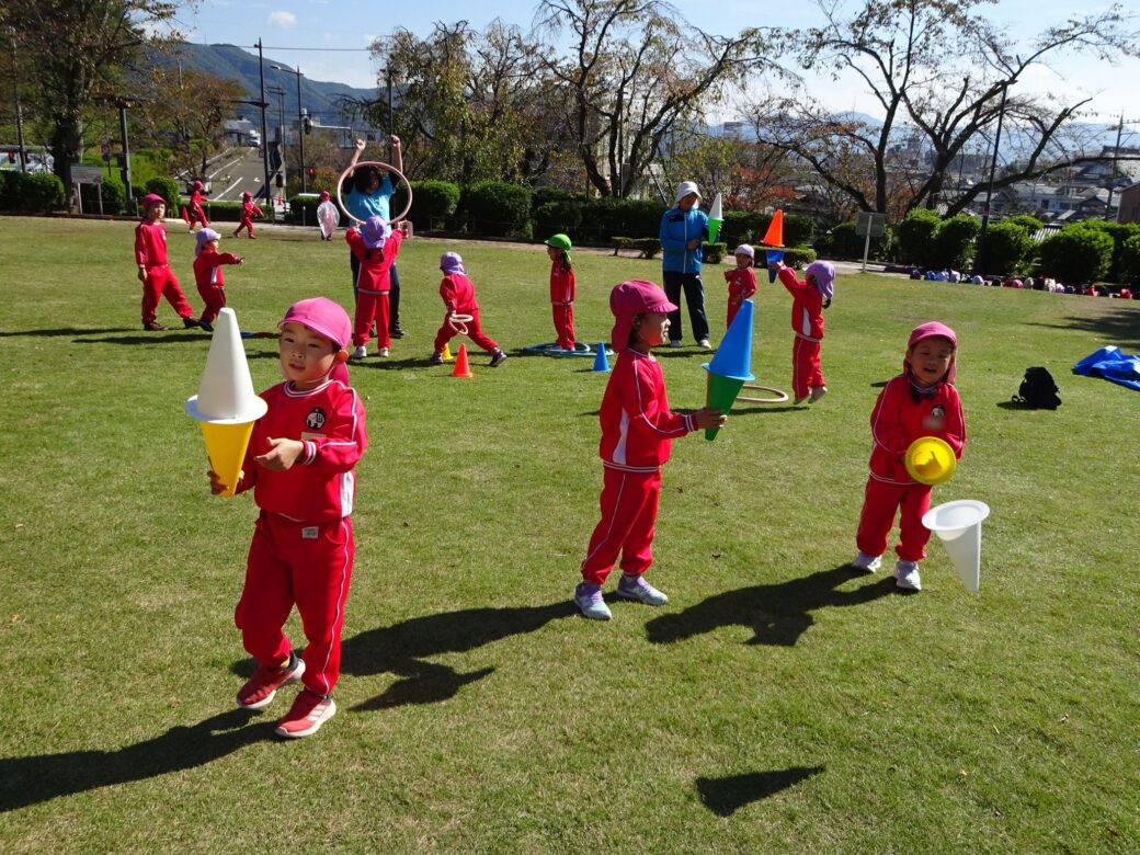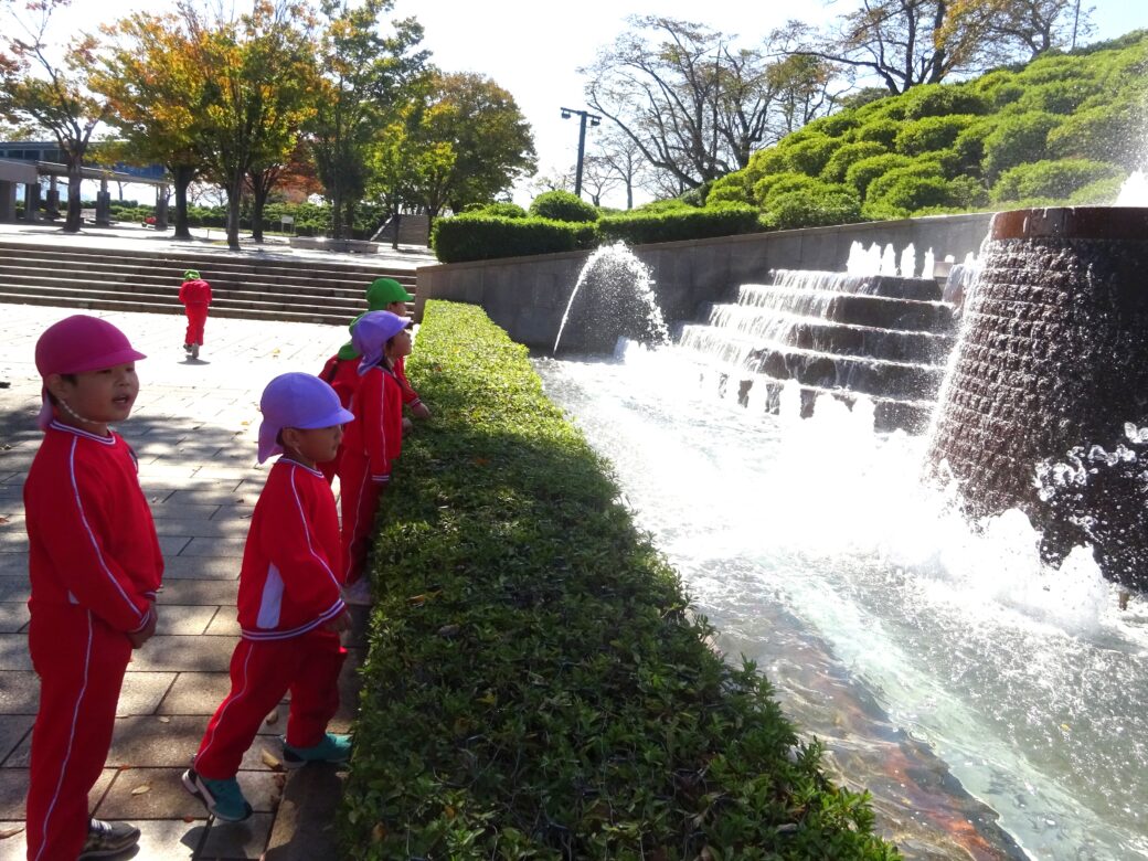 お弁当を食べた後は、芝生の広場でリレーをしたり、リトルコーンで遊んだり、勢いよく出ている噴水を見たり、みんなでかけっこをしたりして楽しんでいました😄