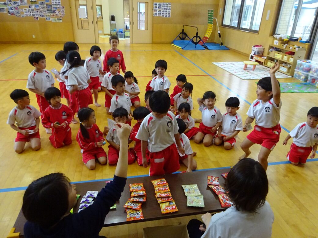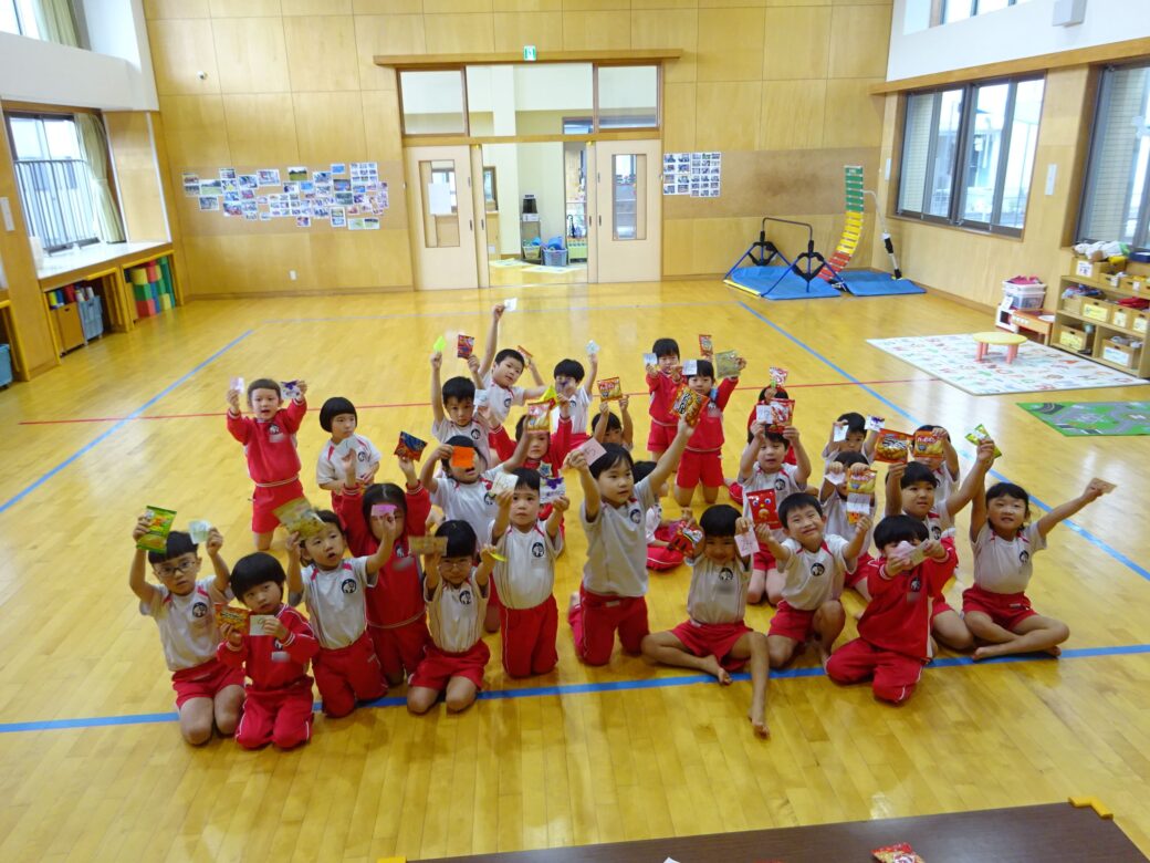 昨日遠足に持っていくおやつ選びをしました。隠してあったクジを見つけて、その番号が呼ばれた子から好きなおやつを選びました。自分の番号が呼ばれると「ハーイ!」と元気よく返事をして、嬉しそうに選んでいましたよ😊