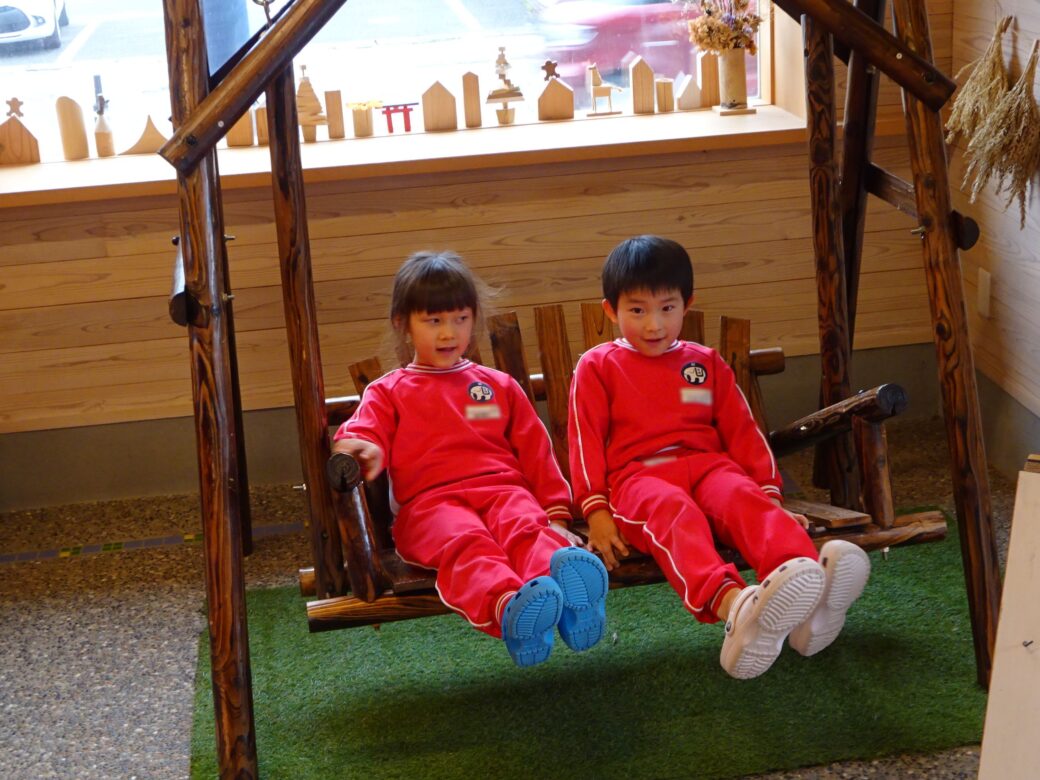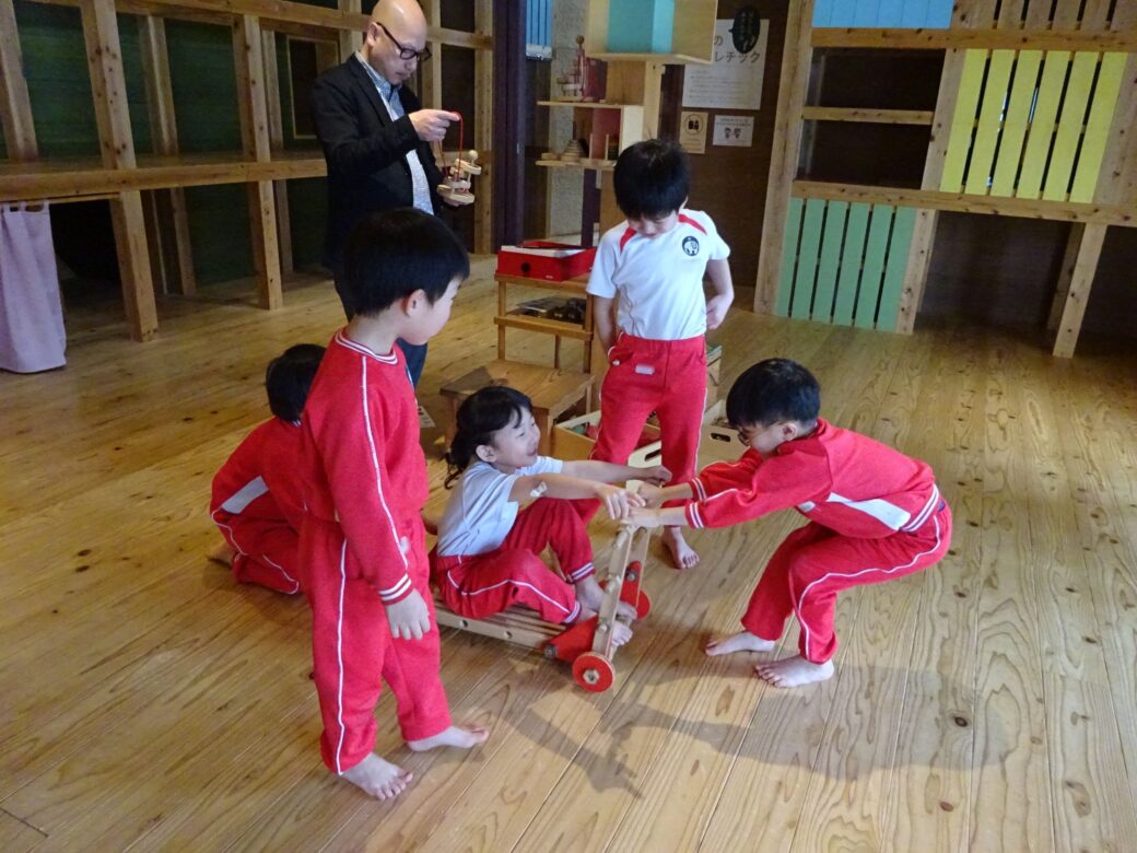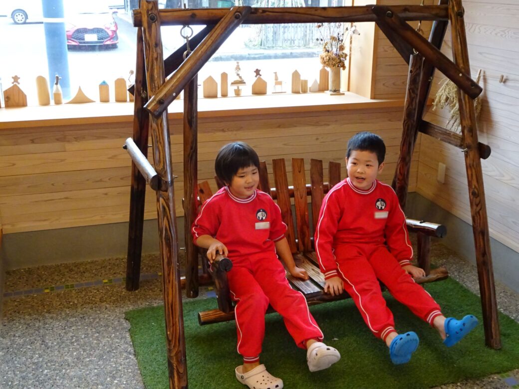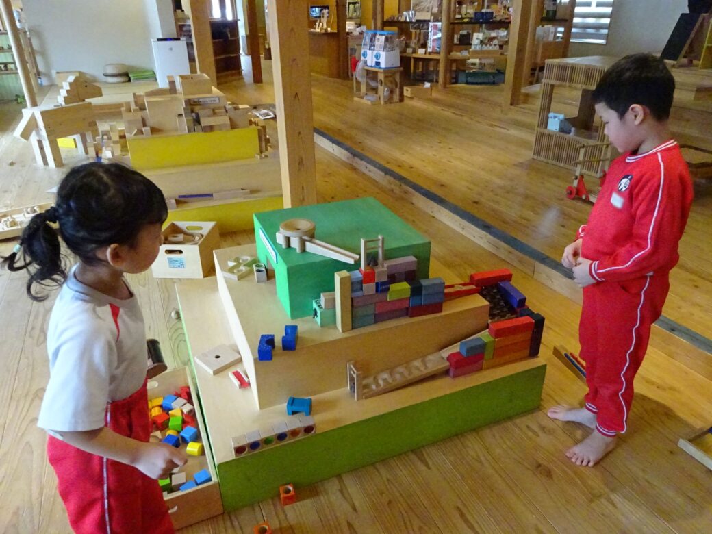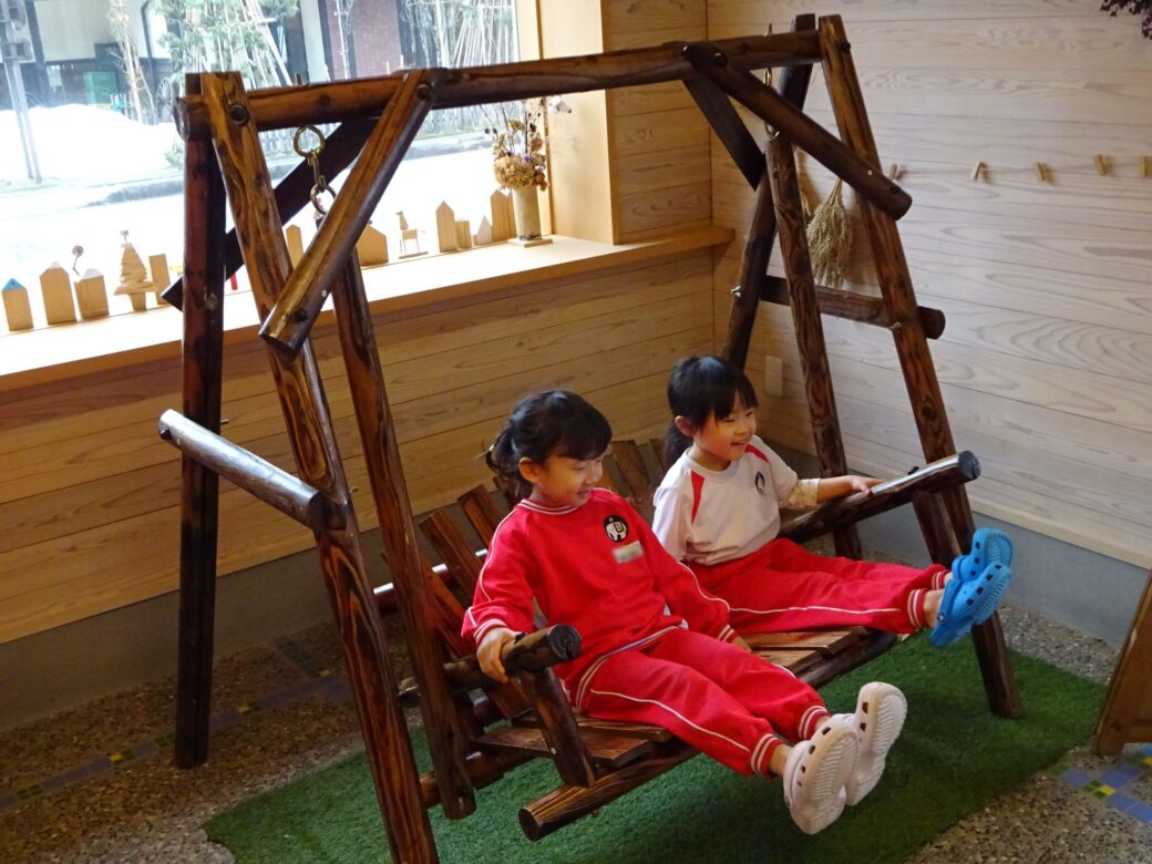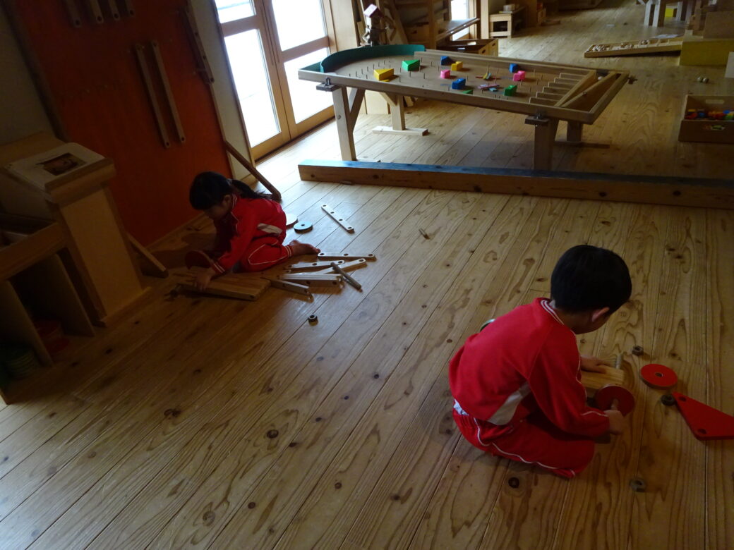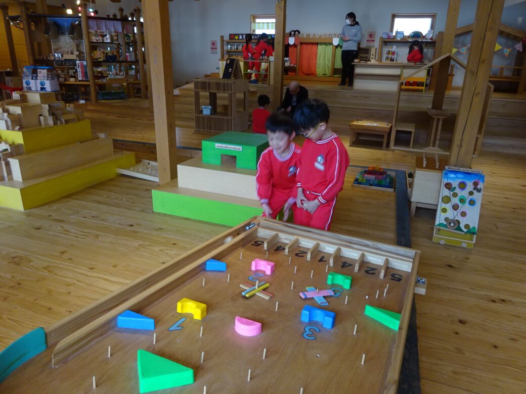 『あそびハウス こどもと森』では、木のおもちゃやアスレチックで思いっきり遊びました
