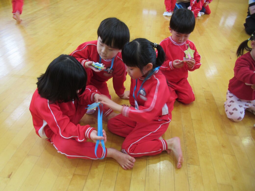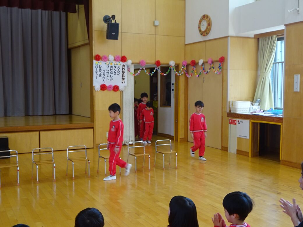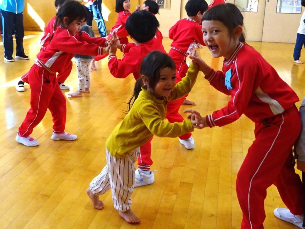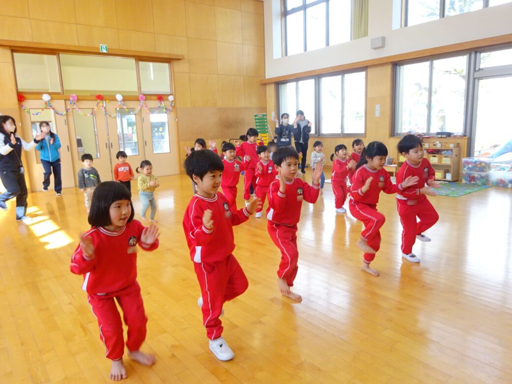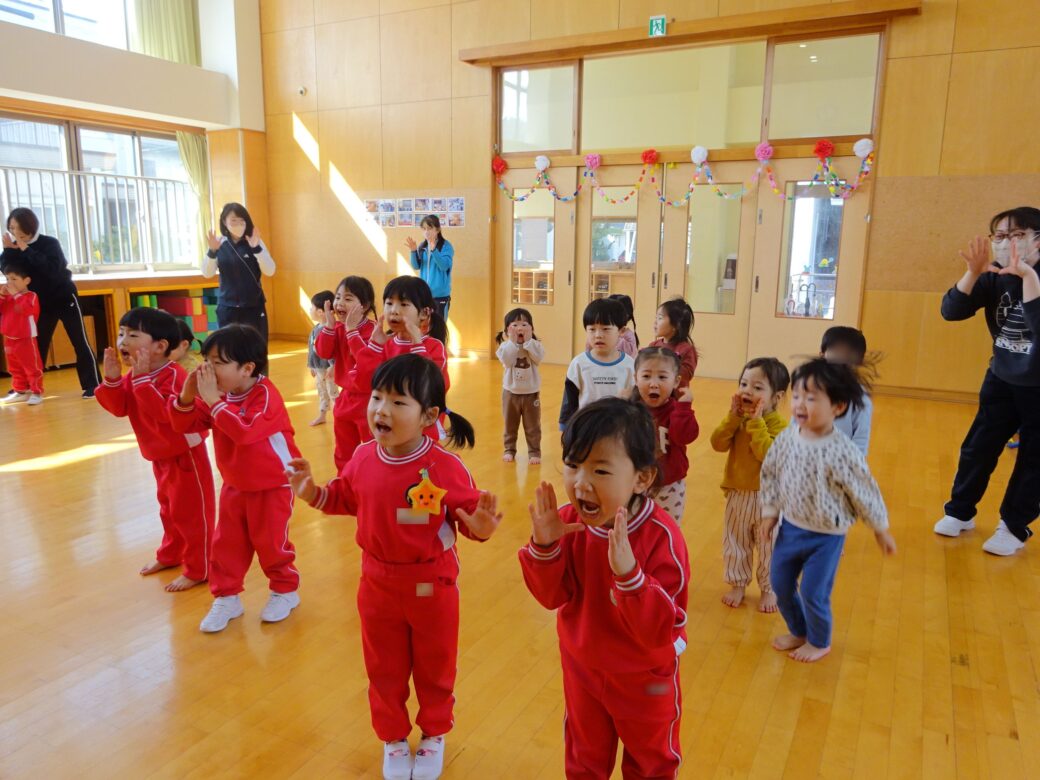 1曲目はばらさんからのリクエストで、運動会の準備体操『がってん★んだ★そうだ!』、2曲目は遠足で踊った『おいらはにんじゃ』を大きい子と小さい子でペアになって踊りました![]()