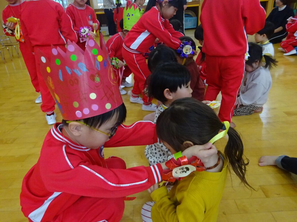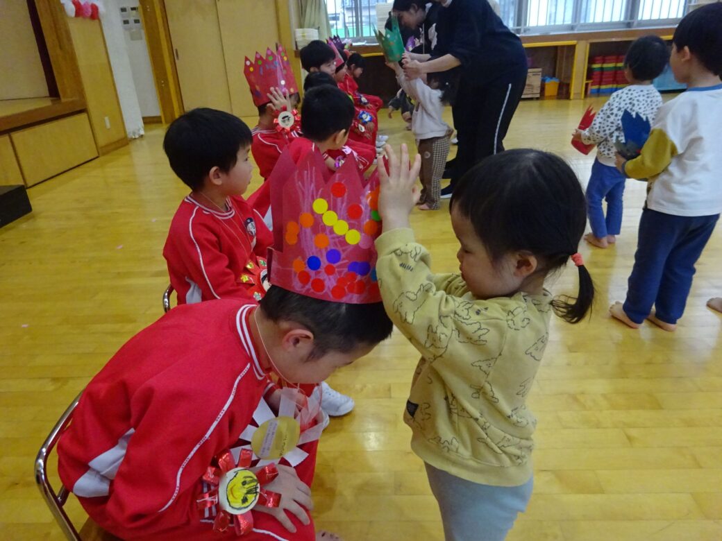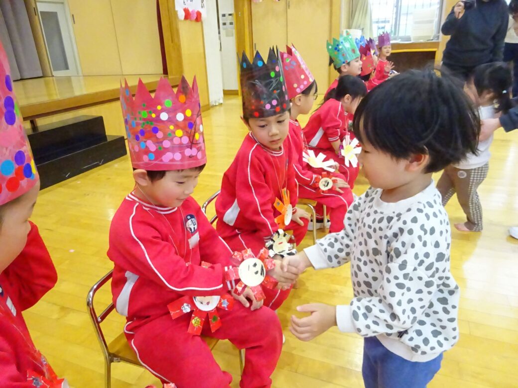 まず各クラスから心を込めて作ったプレゼントを、ばらさんに渡しました![]()