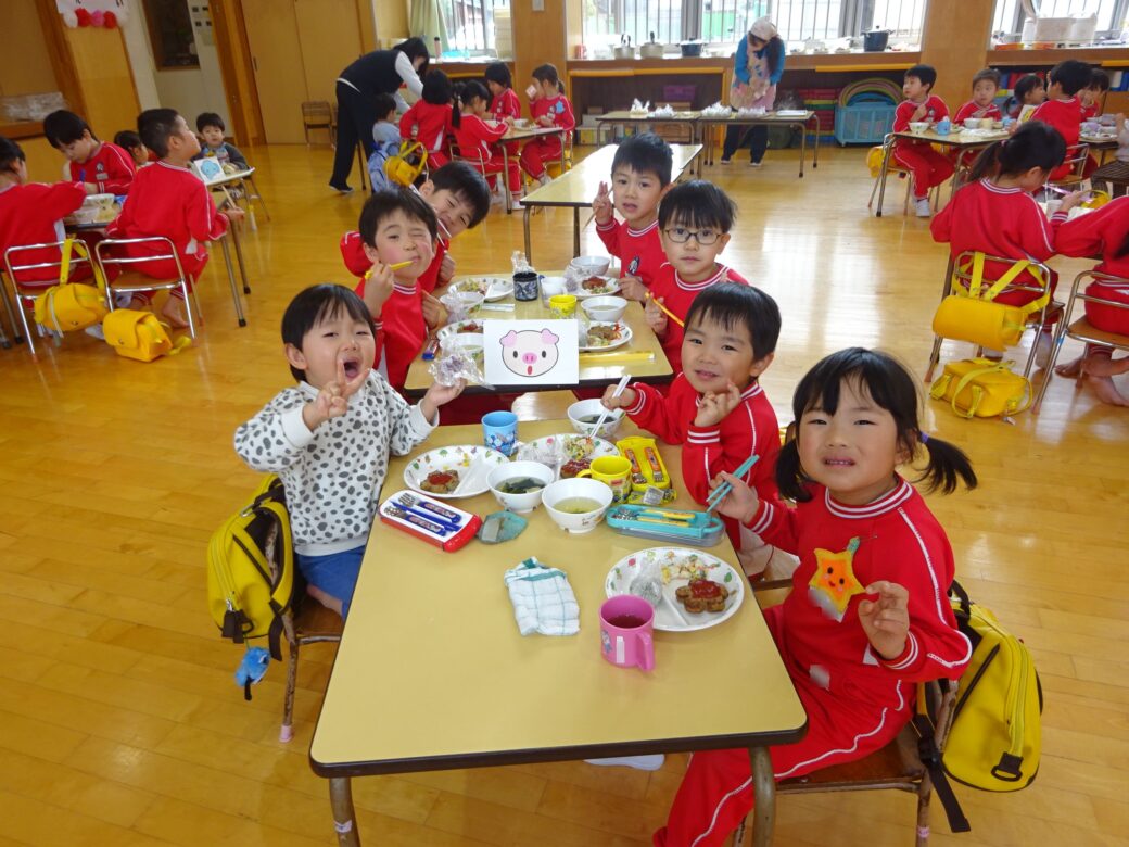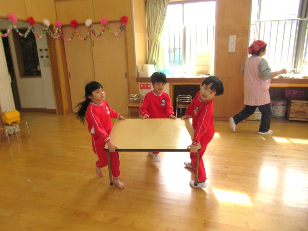 机を運んだり、みんなに給食を配ったりと張り切っていましたよ![]()