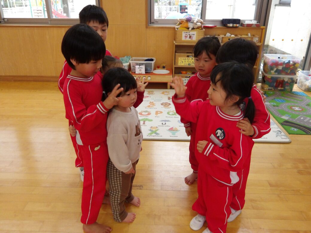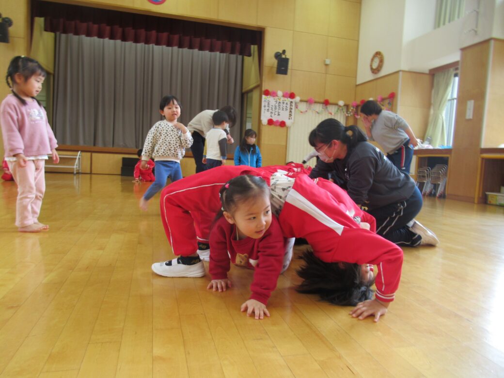 ばらさんがトンネルをして、ひよこ・たまごさんはその中をくぐらせてもらったり、こすもす・たんぽぽさんは、「二段ベッド」を教えてもらって一緒にやってみたりしました![]()