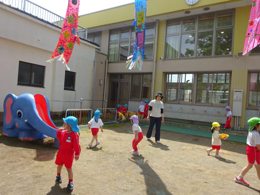 こいのぼりが泳いだよ🎏 みんなで園庭に集まって、クラスごとに作ったこいのぼりをあげました🎏『こいのぼり』のうたを歌うと、こいのぼりが元気に空を泳ぎ始めて、みんなとっても喜んでいましたよ😃その後は、こいのぼりを見ながらお外で遊びました🎶しばらく園庭でこいのぼりが泳いでいるので、また親子で見に来てくださいね😊 カテゴリー: みんな | 投稿日: 2026年4月28日 | 投稿者: shotoku