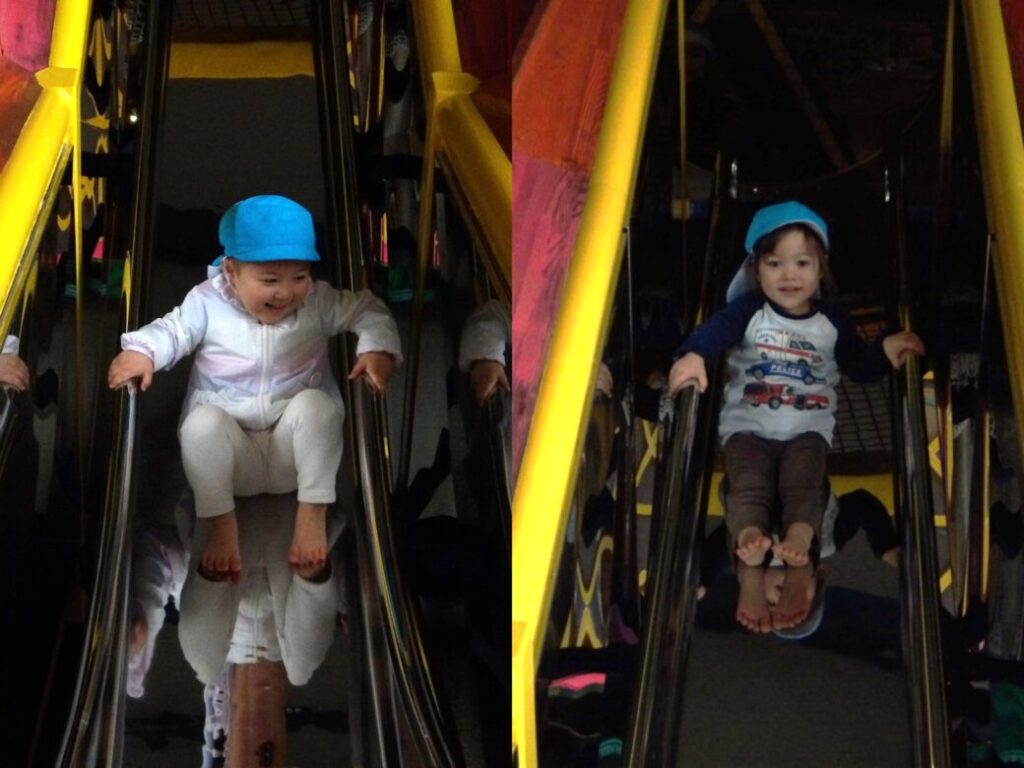エンゼルランドに着いたら、早速お外の遊具で遊びましたよ![]()