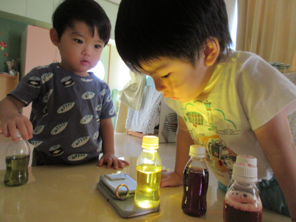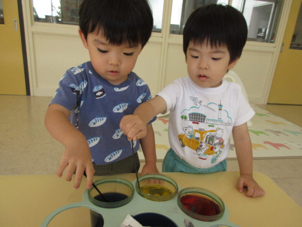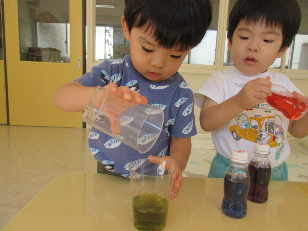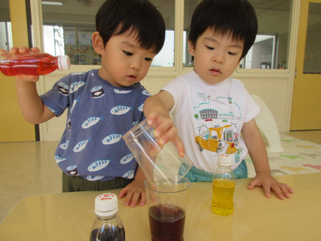 自分たちでそ~っとコップに色水を注いで、自分たちでできることがなんだか嬉しそうでした